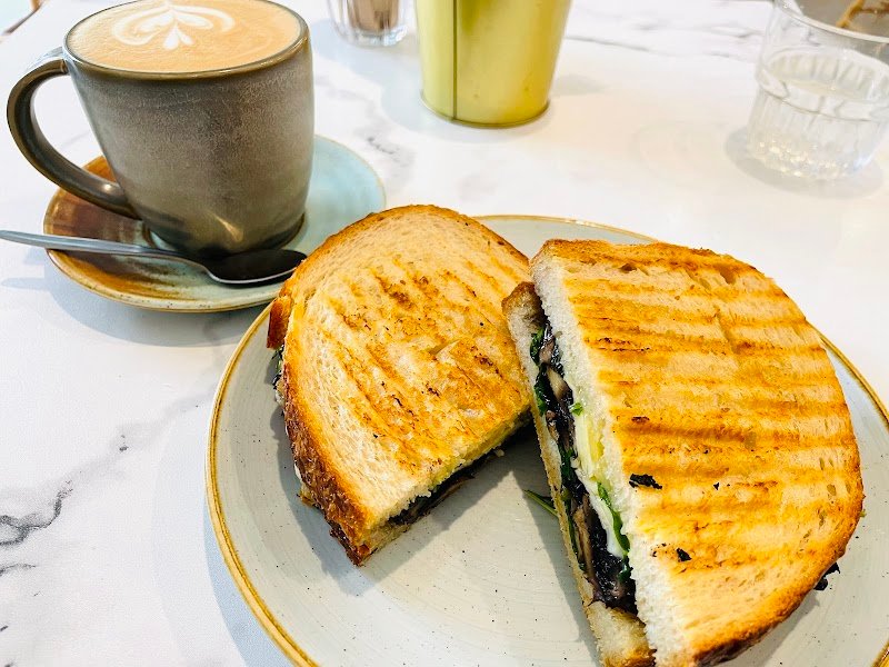 A warm and welcoming atmosphere exists here. I arrived around an hour before closing time, despite this there were still several options for pre-made sandwiches available. I selected a New York Deli sandwich, a slice of Mango Bread, and a Flat-white coffee. The friendly staff member offered to toast the sandwich and Mango Bread for me. The coffee was nice, and was served in an interestingly decorated cup. The New York Deli sandwich was expertly toasted, the bread and ingredients were fresh and delicious. The pickle and the tomato relish components added a delightful little "kick" to the sandwich, without overwhelming the overall flavour. The Mango Bread had been toasted just enough to slightly sear the exterior, while leaving the interior moist and light. It tasted great, enhanced with the supplied butter.