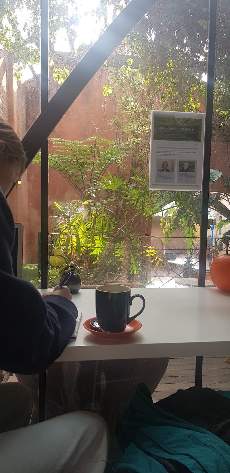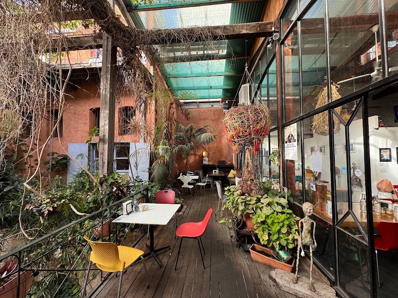 A fantastic list little gem of a location. Meander down the music filled alley into a majestic court yard. We enjoyed a beautiful spiced Chai Latte with our brunch. All super tasty and well presented. Thank you, weโll be back for sure!