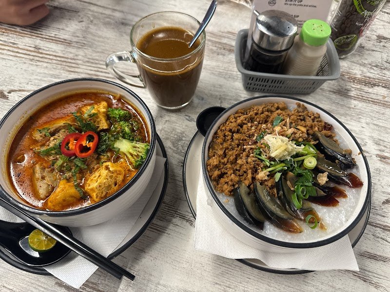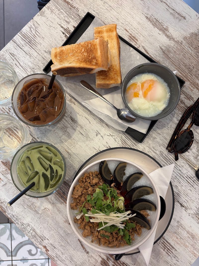 Had breakfast here, pick the taro latte and kopi peng. not quite satisfies with the taro latte (taste more milk with bit of smell of taro) but kopi peng was nice. The porridge also nice. extra charge $1 for the chili if you want. Condiments not available in every table so you need to ask if you want. Hospitality was nice and warm , plenty of seat but this place was packed, quite noisy but still can talkโจ