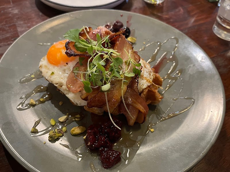 Came here for brunch. We chose this cafe as Brick Lane was pretty packed. Service and atmosphere are great. And we had a good time catching up. Noise level is not too bad. Portion size could be bigger for the price, but taste wise, itโs pretty good. We enjoyed the Chilli Prawn Scramble and Chicken Supreme. Not really a big fan of the Bacon & Waffle. Overall, a lovely meal at Krimper Cafe! Lovely vibes!